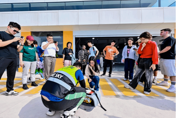 The day’s activities balanced cultural immersion with technological discovery. The morning session featured coastal heritage studies at Guishan Pier’s fishing grounds, literary analysis of Song Dynasty poetry at Wen Tianxiang Square, and environmental art interactions along the boardwalk. The afternoon workshop showcased pioneering drone delivery services between Tangjia Port and Guishan Island, where students experienced real-time take-away transportation - observing how low-altitude logistics systems enhance remote community services.